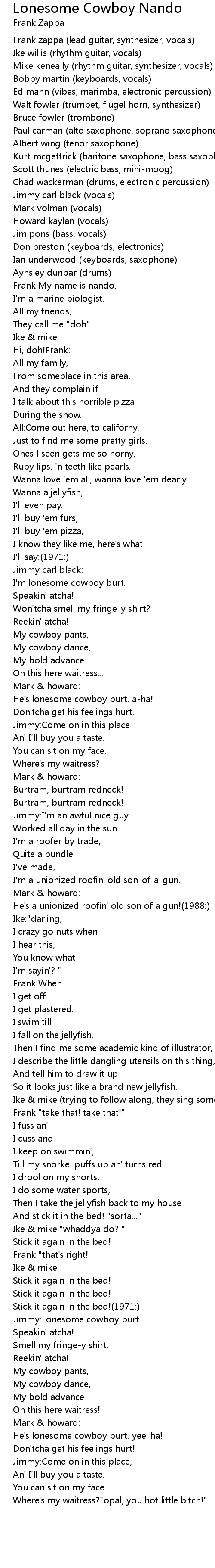 Frank zappa (lead guitar, synthesizer, vocals) |
