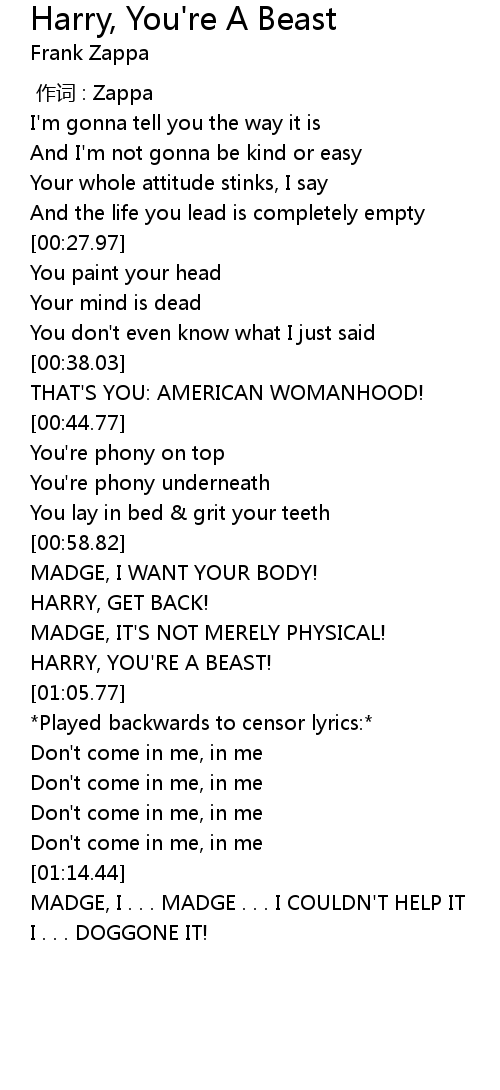 | [01:04.70] | HARRY, YOU' RE A BEAST! |