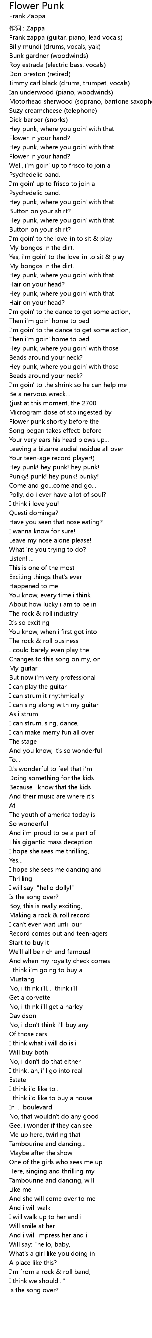 | Frank zappa (guitar, piano, lead vocals) | |