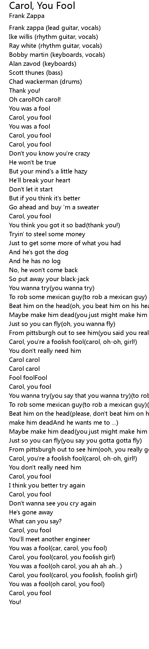 Carol, you're a foolish fool(carol, oh-oh, girl!) |