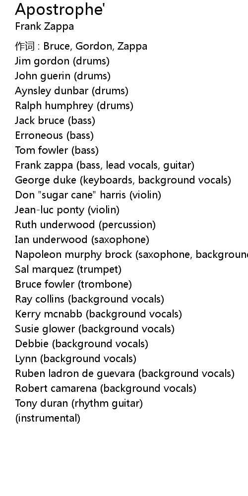 | Frank zappa bass, lead vocals, guitar | |