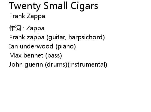 | Song | Twenty Small Cigars |