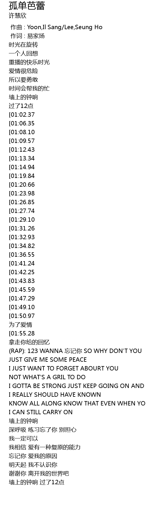 | [03:10.30][01:49.10] | 孤孤单单 |