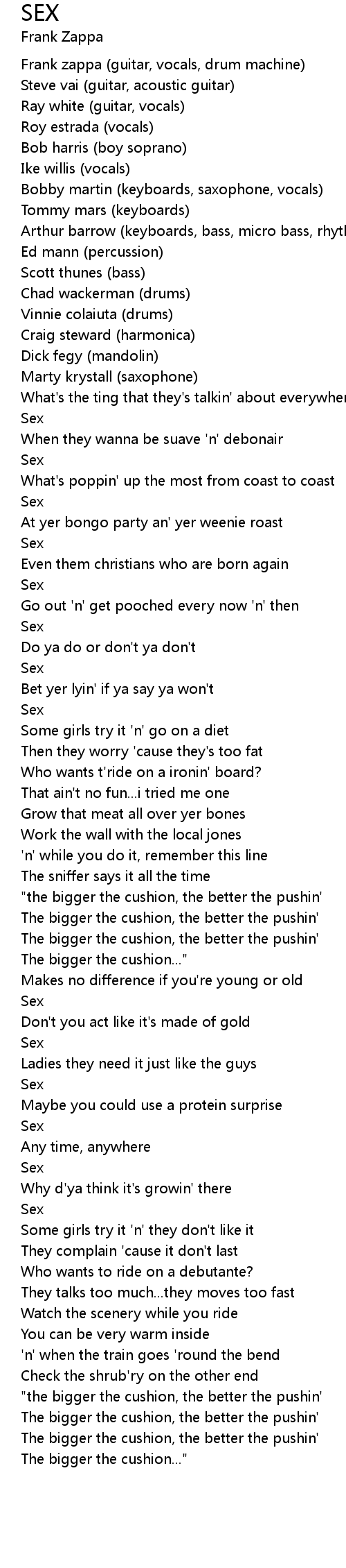 Frank zappa (guitar, vocals, drum machine) |