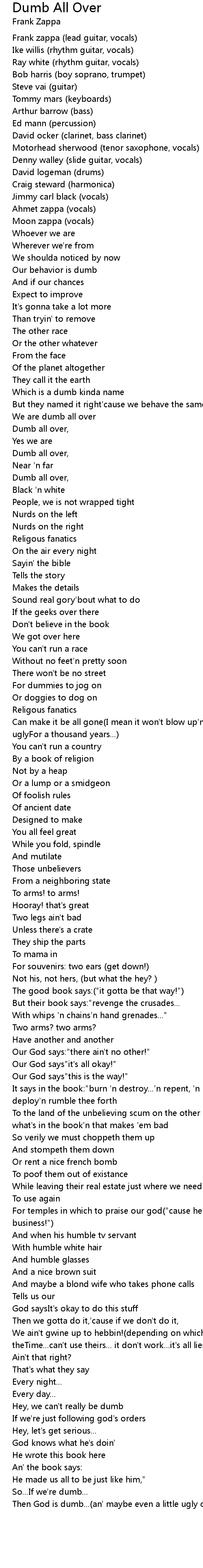 Dumb All Over Lyrics