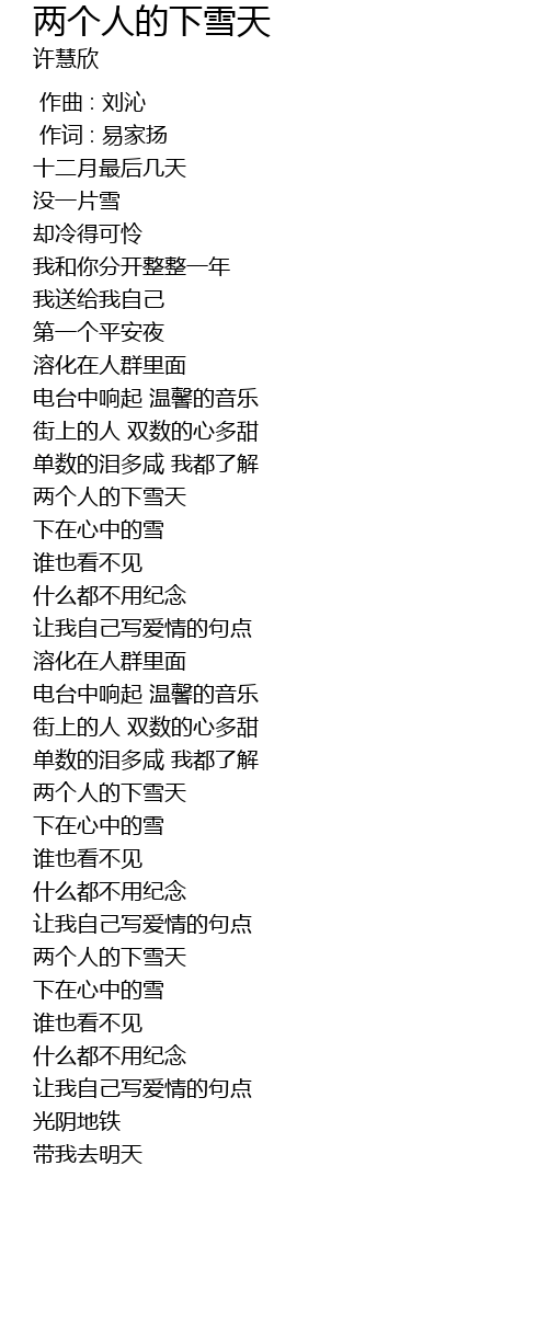 | [02:32.790] | liǎng gè rén de xià xuě tiān |