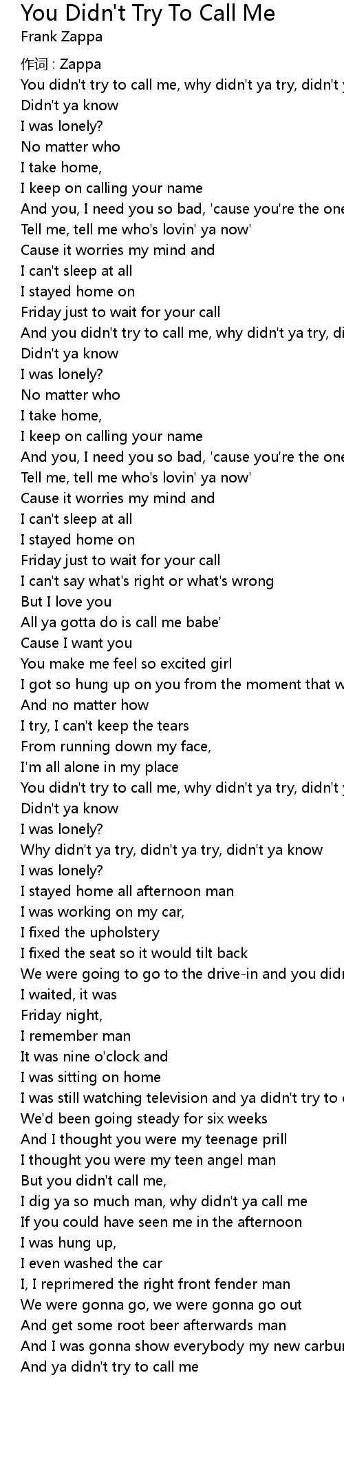 | And you didn' t try to call me, why didn' t ya try, didn' t ya try? | |