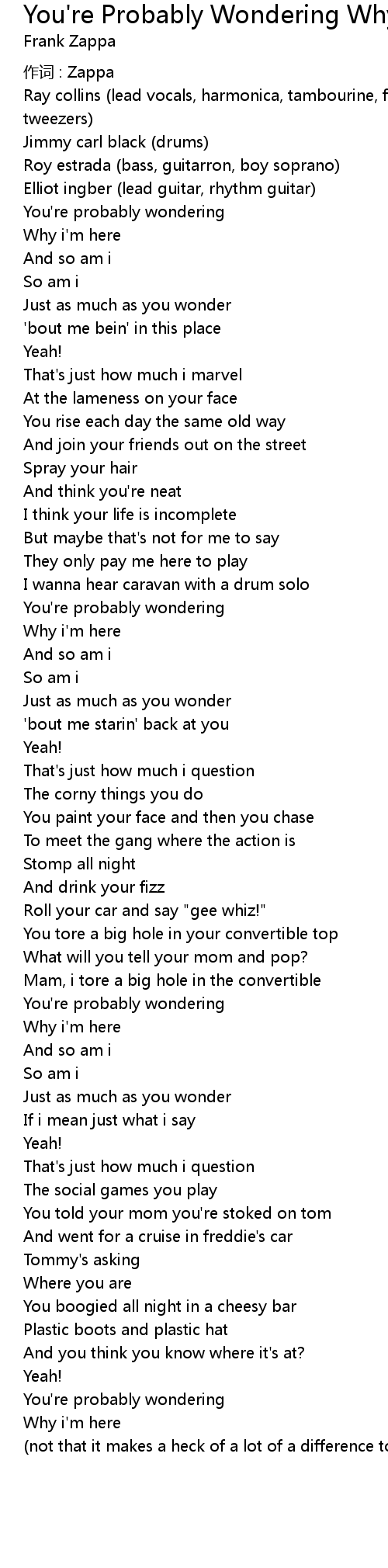 | Ray collins lead vocals, harmonica, tambourine, finger cymbals, bobby pin, tweezers | |