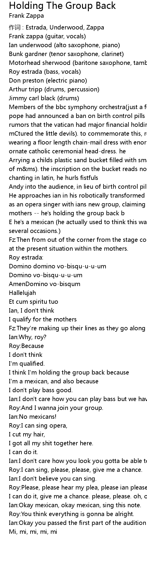 | 作词 : Estrada, Underwood, Zappa | |