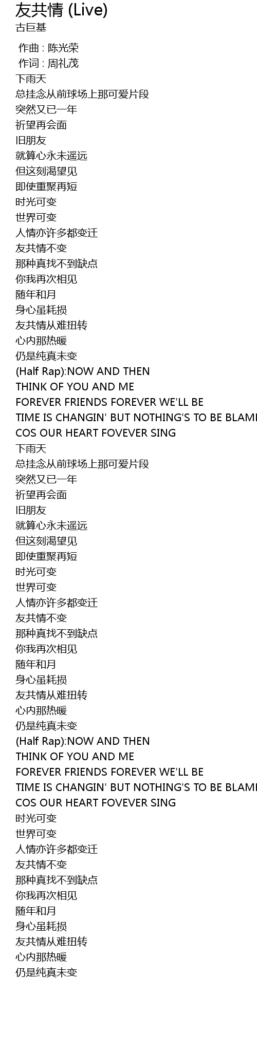 | [01:14.34] | FOREVER FRIENDS FOREVER WE'LL BE |