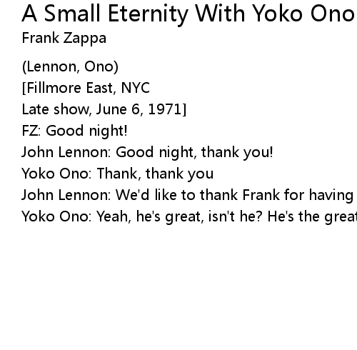 | Yoko Ono: Yeah, he's great, isn't he? He's the greatest . . . |