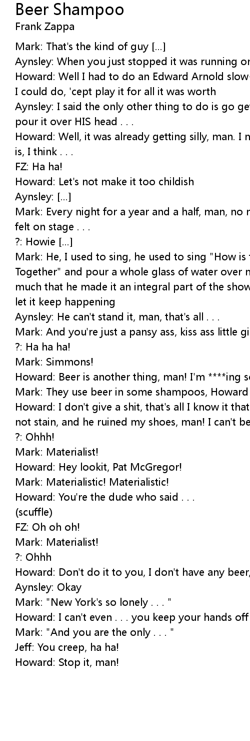 Beer Shampoo Lyrics