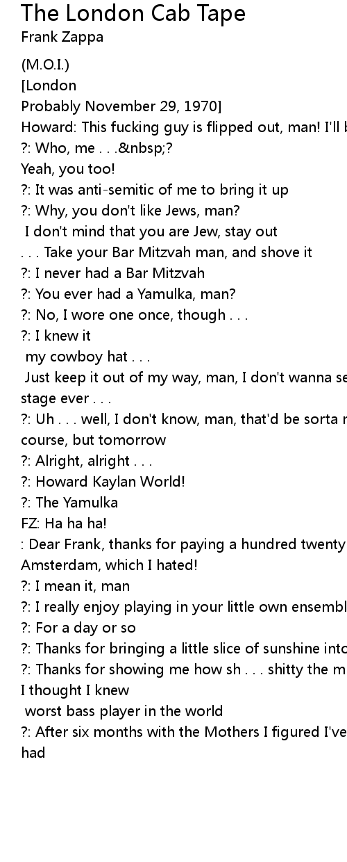 ?: [...] Just keep it out of my way, man, I don't wanna see that Yamulka on stage ever . . . |