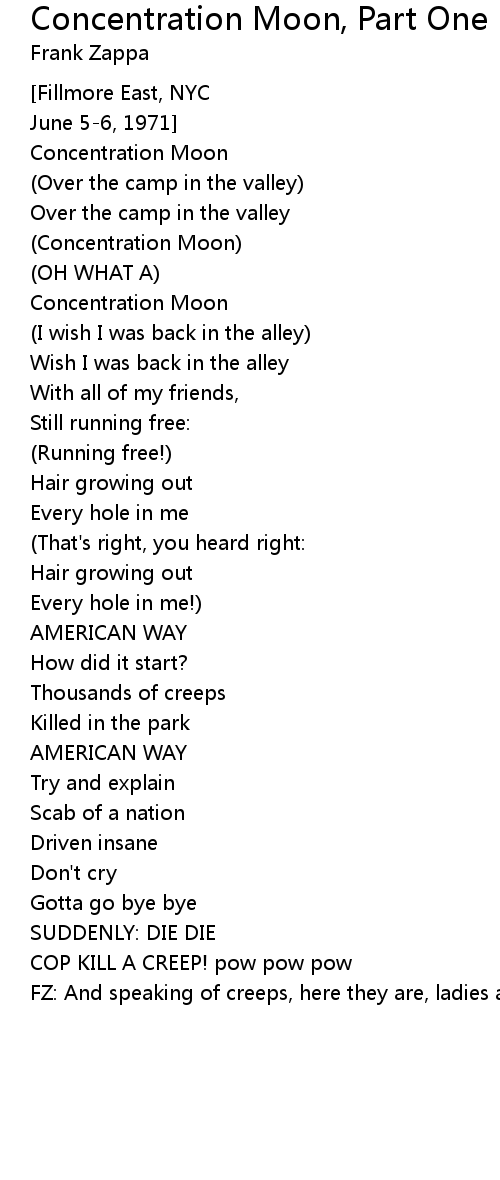 Concentration Moon, Part One Lyrics