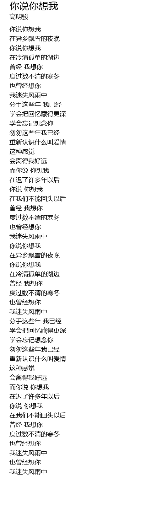 | [00:29.87] | nǐ shuō nǐ xiǎng wǒ |