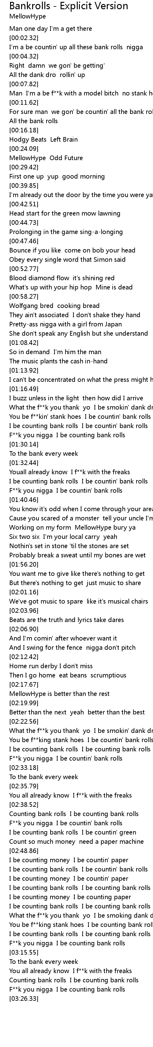 [03:08.01] You be f**king stank hoes I be counting bank rolls