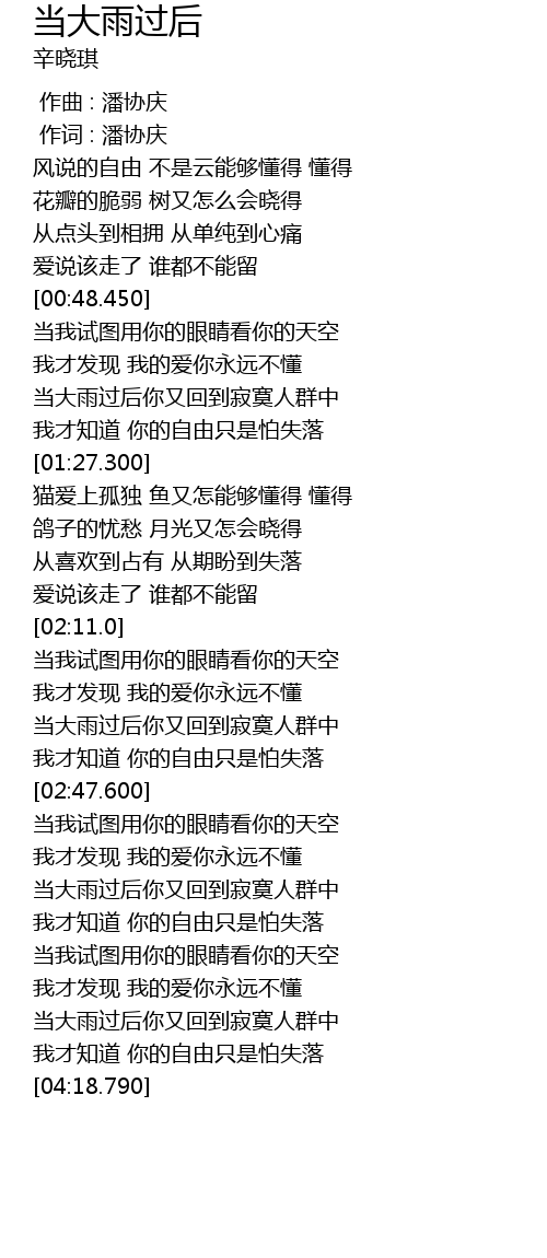 | [03:58.700] | 当大雨过后你又回到寂寞人群中 |
