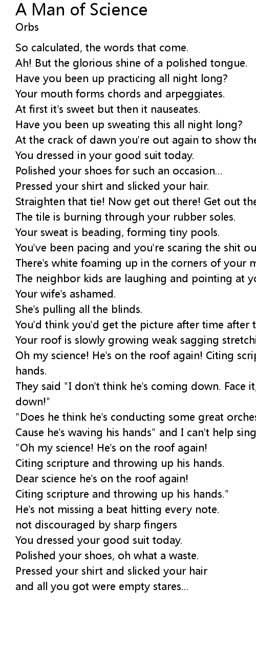 Your roof is slowly growing weak sagging stretching like your speech... |