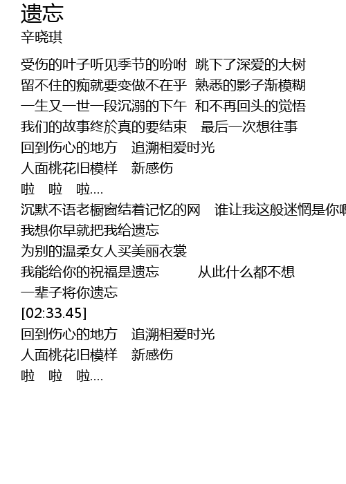 | [02:23.37] | 我能给你的祝福是遗忘 从此什么都不想 |