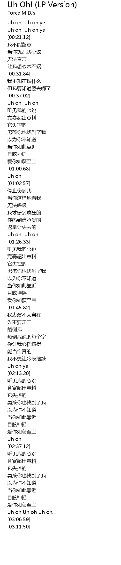 | [02:56.05] | Uh oh Uh oh Uh oh... |