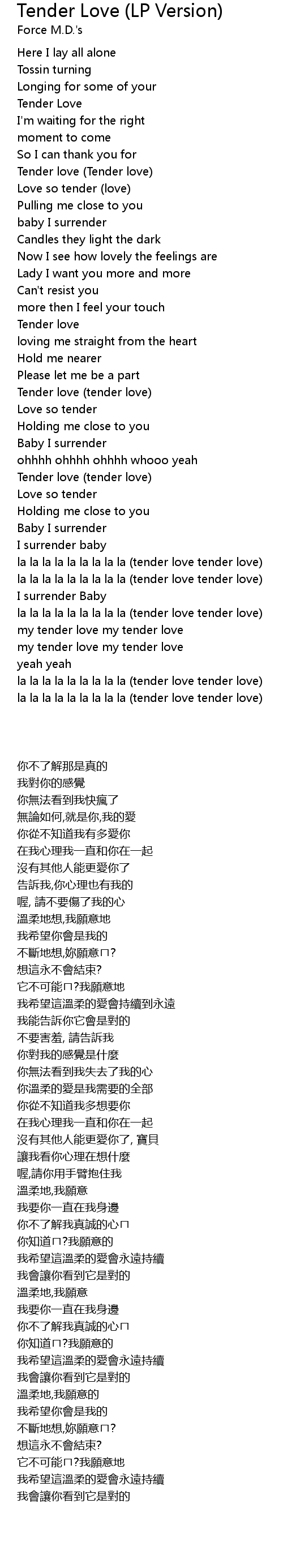 la la la la la la la la la (tender love tender love) |