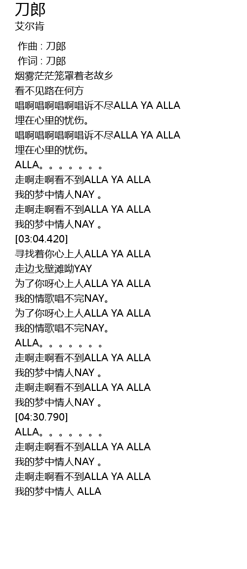 | [03:39.500] | 寻找着你心上人ALLA YA ALLA |