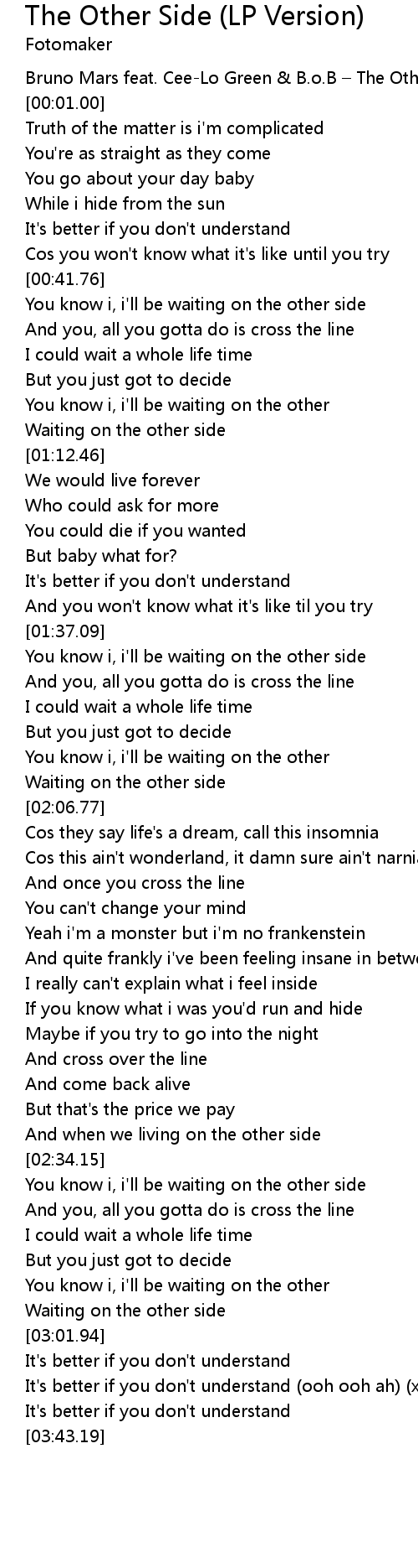 | [00:00.00] | Bruno Mars feat. CeeLo Green B. o. B The Other Side |