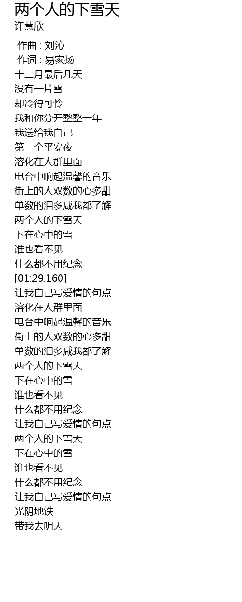 | [01:09.539] | liǎng gè rén de xià xuě tiān |
