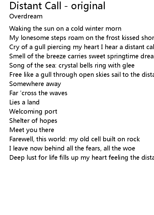 | Cry of a gull piercing my heart I hear a distant call | |
