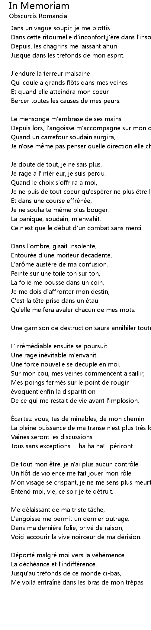 | Song | In Memoriam |