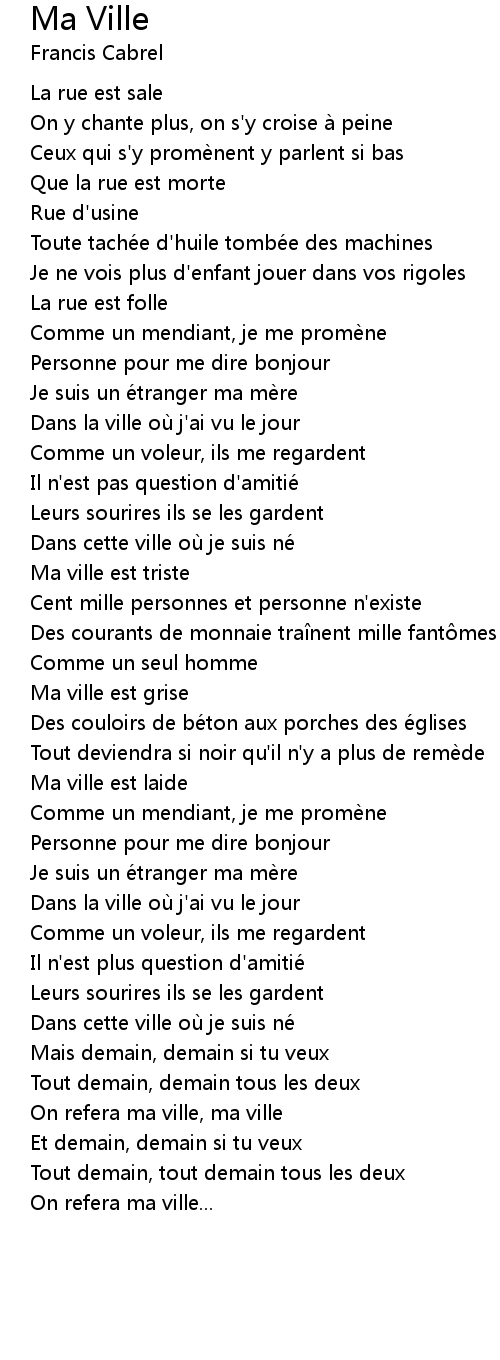 | Song | Ma Ville |