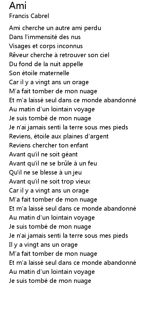| M' a fait tomber de mon nuage | |