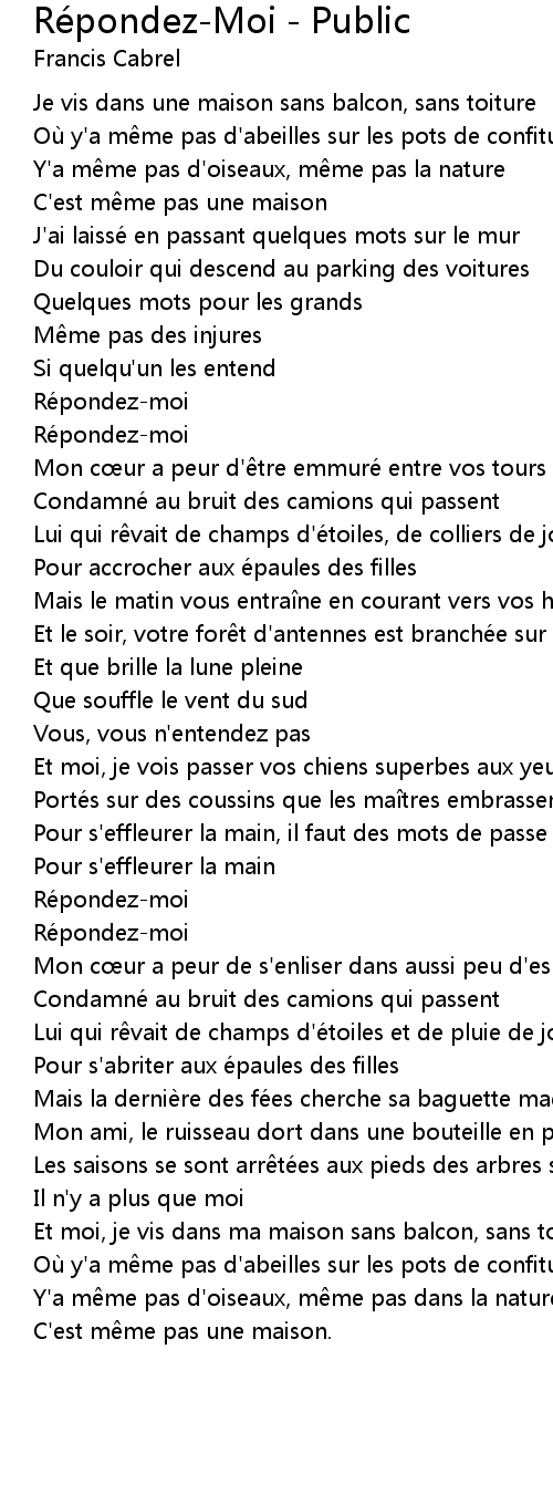 | Song | Répondez-Moi - Public |