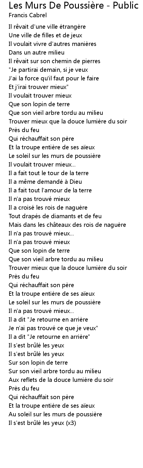 | Song | Les Murs De Poussière - Public |