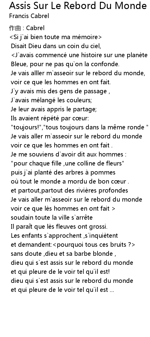 | Je vais alller m`asseoir sur le rebord du monde, | |