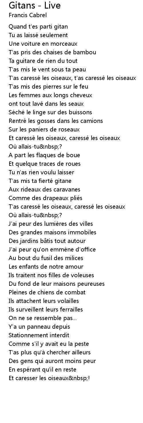 | T'as caressé les oiseaux, caressé les oiseaux | |
