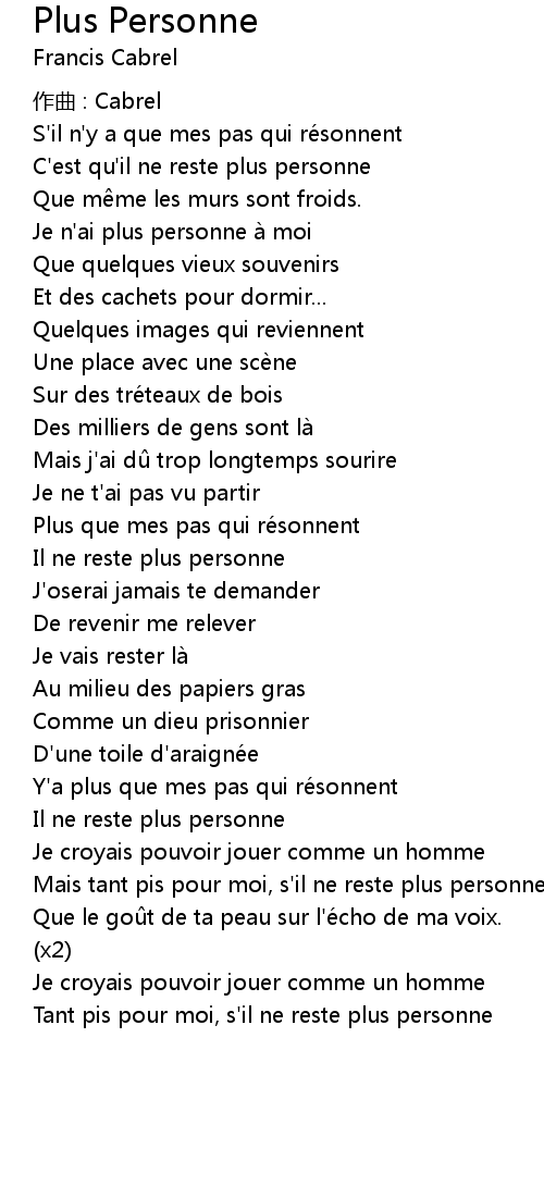 | Song | Plus Personne |