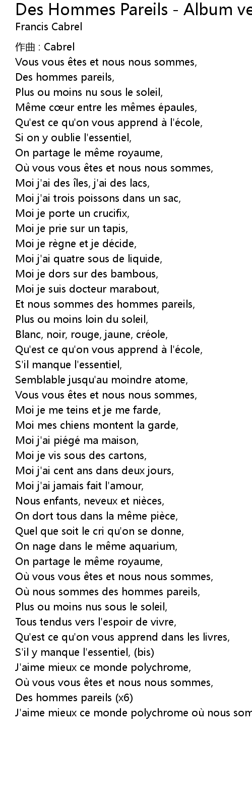 | J' aime mieux ce monde polychrome ou nous sommes ... |