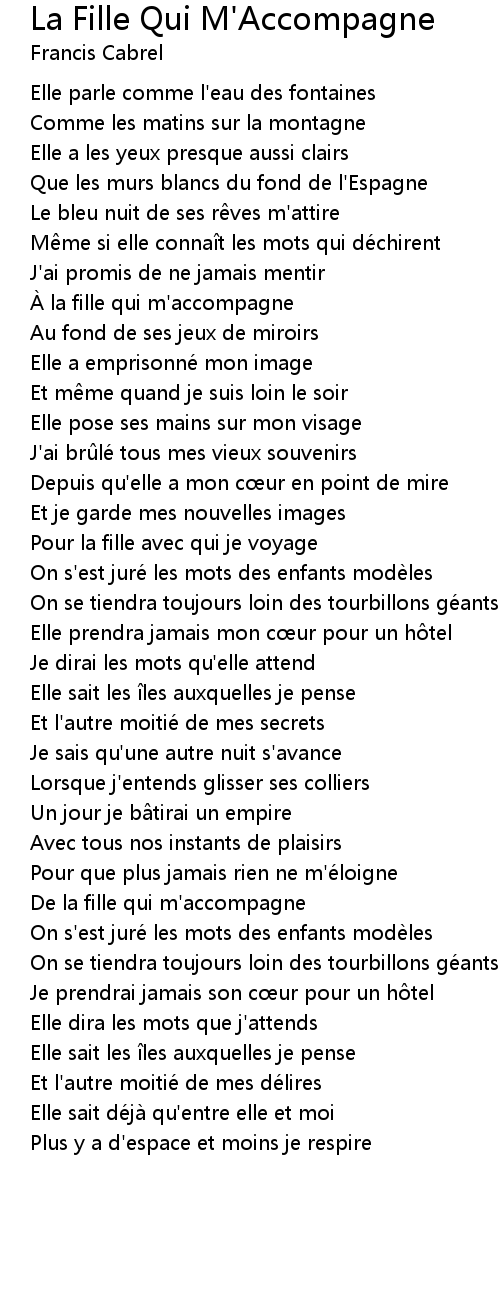 | De la fille qui m' accompagne | |