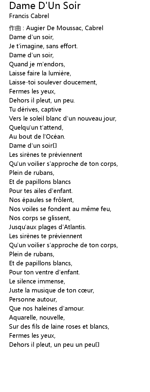 | Dame d' un soir, | |