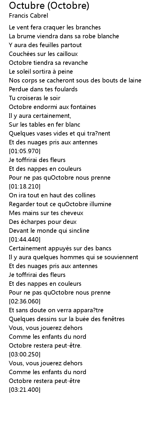 | [01:12.910] | Pour ne pas quOctobre nous prenne |