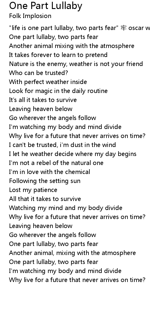 | One part lullaby, two parts fear | |