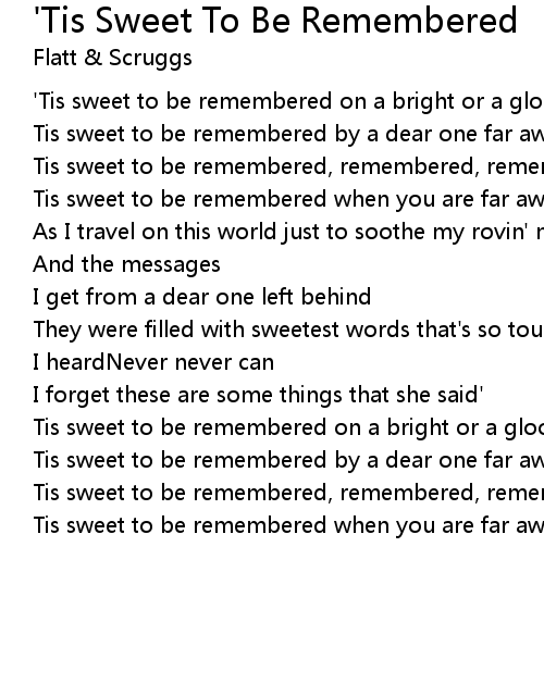 Tis sweet to be remembered, remembered, remembered' |