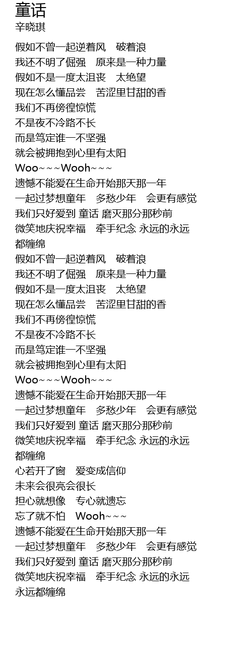 | [02:45.87] | 我们只好爱到 童话 磨灭那分那秒前 |