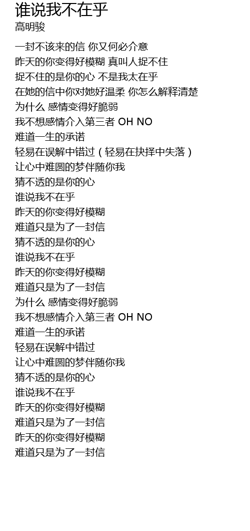 | [03:21.68] | shuí shuō wǒ bù zài hu |
