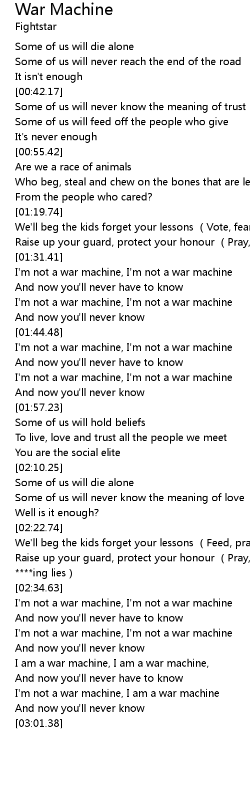 | [01:32.28] | I'm not a war machine, I'm not a war machine |