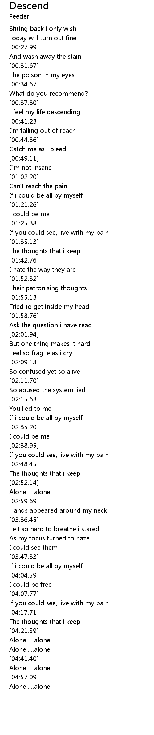 | [00:39.17] | I feel my life descending |