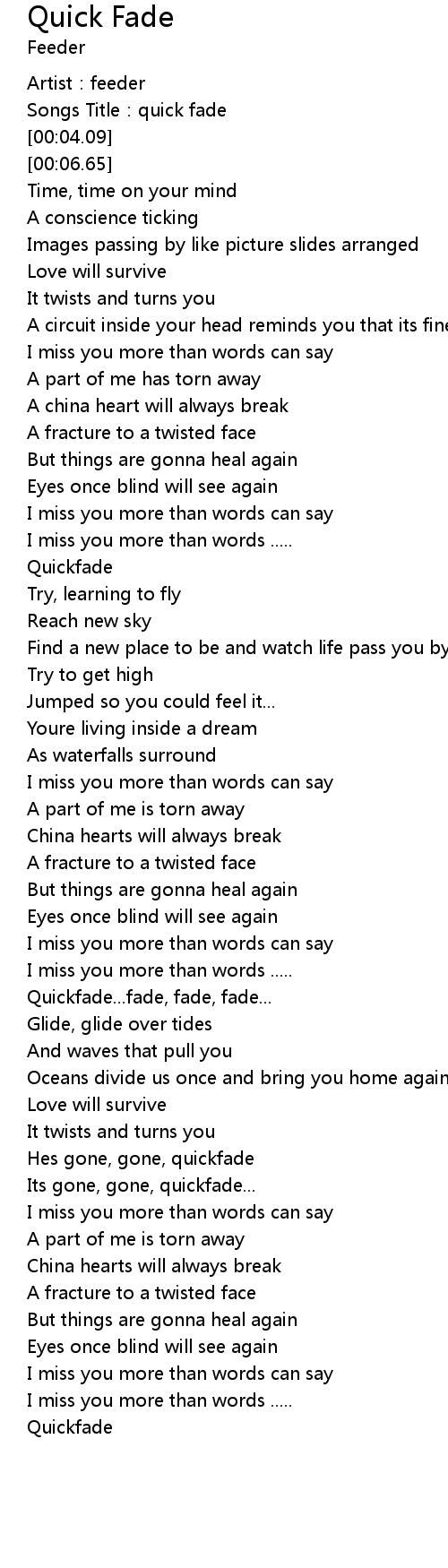 | [00:02.10] | Songs Title: quick fade |