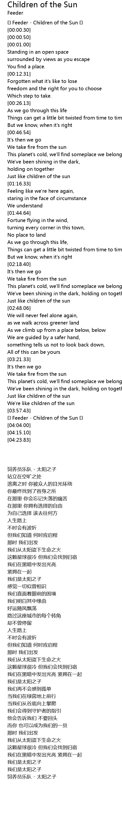 | [00:00.00] | ❤ Feeder - Children of the Sun ❤ |
