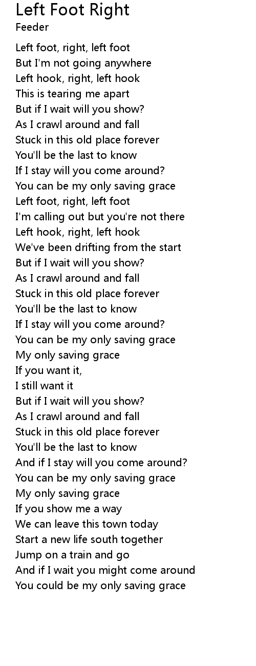 | Left foot, right, left foot | |